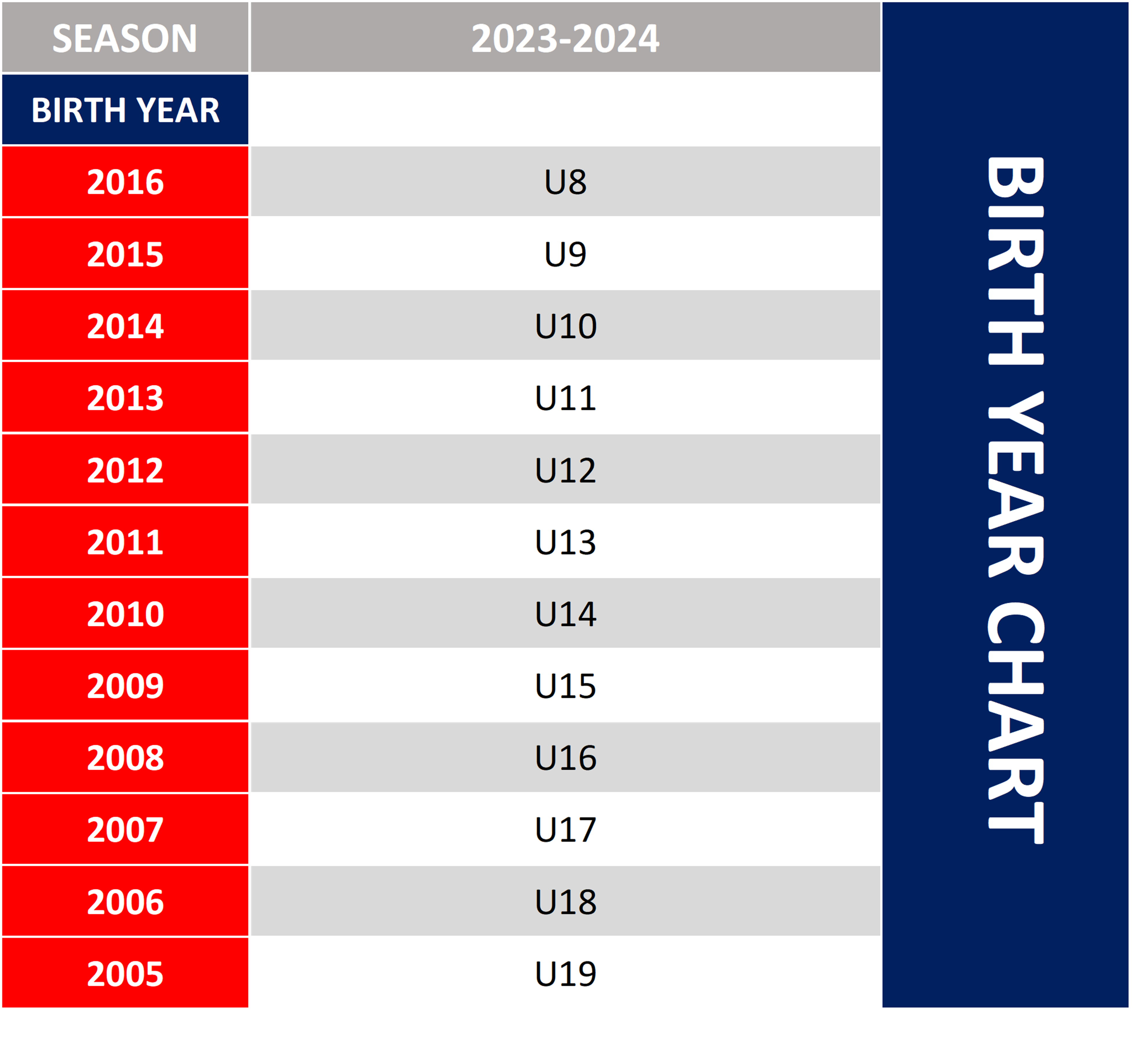 Age Groups Accepted: Boys & Girls U8 - U15